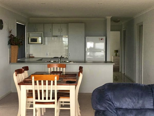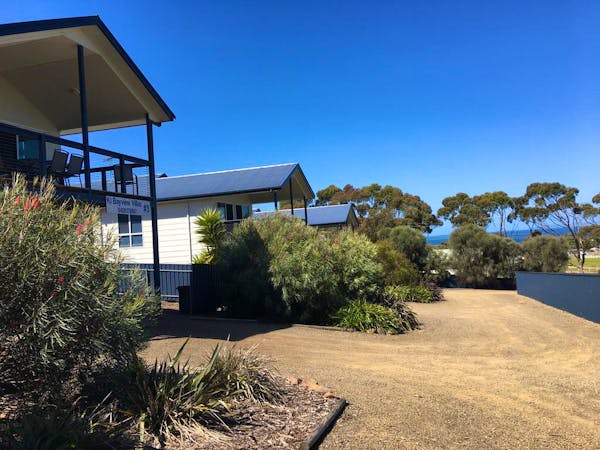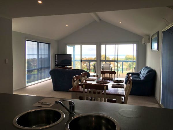 This air-conditioned Villa features a private patio with ocean views over Kingscote and Nepean Bay. It also has a fully equipped kitchen, BBQ facilities, laundry facilities and a living room with a 42 inch flat-screen TV and a DVD player.